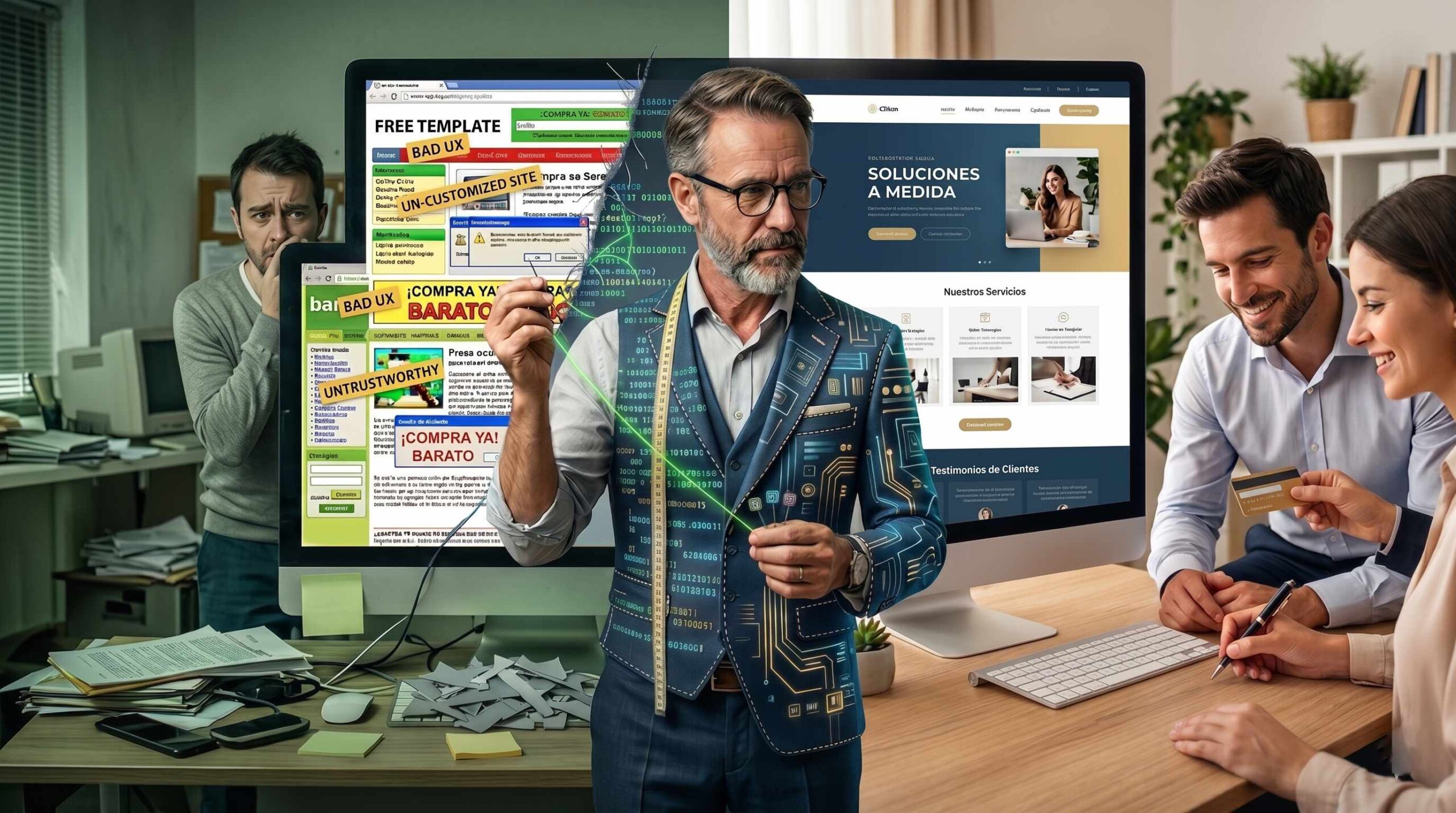 Te corto un traje digital a medida para que tu negocio deje de pedir permiso y empiece a pedir la tarjeta de crédito.